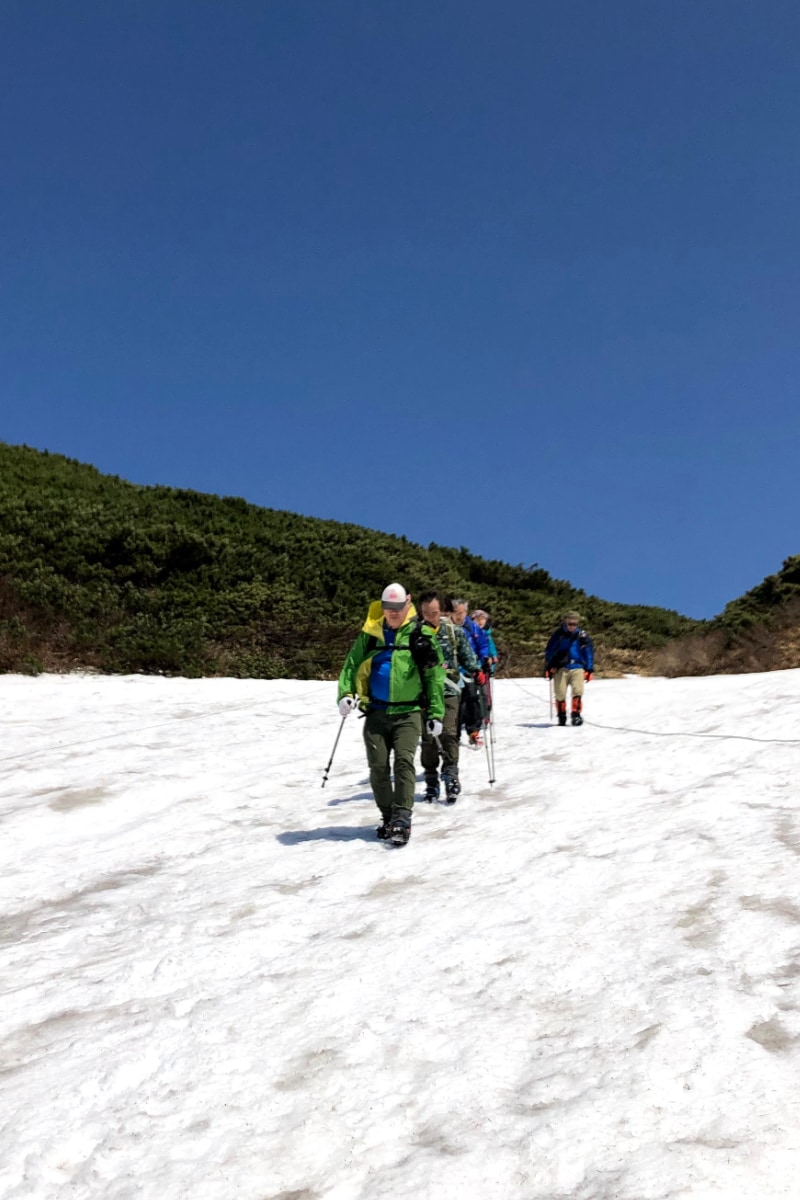 | 所要時間 | 標準で9時間程度・標高差約900m(雪渓の状態、沢水の量などにより前後します) |